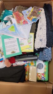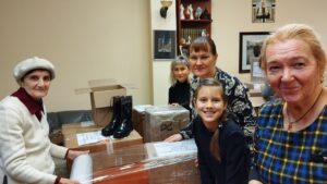 В Покровском храме также освоили технику плетения ковриков из трикотажных лент. Эти коврики получаются крепкими и удобными, а теплые вязаные пояса и шерстяные носки, связанные мамами и бабушками, добавляют уюта и заботы в каждую посылку.
