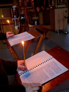 Молитвенное чтение Канона совершили Калининградские мотоциклисты из клуба «Ночные волки», приходят помолиться родные и близкие военнослужащих СВО.